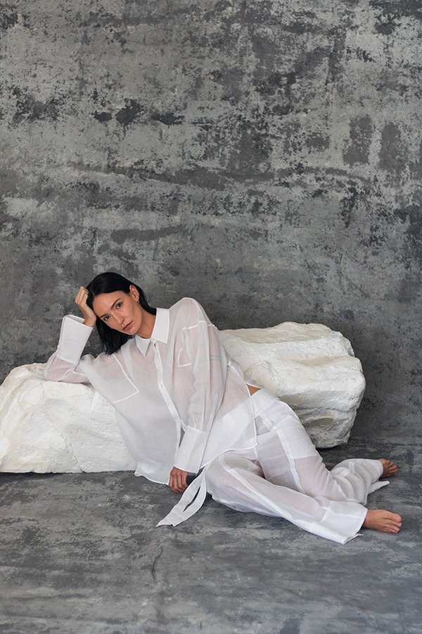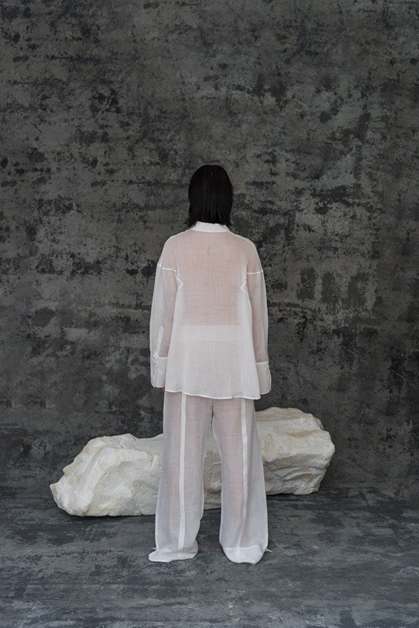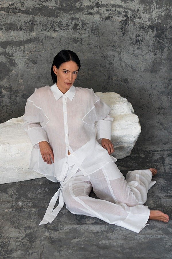 La Camisa Costa está confeccionada en 100% ramio. Tiene un calce amplio y relajado, acentuado por los recortes en frente y espalda. Con cuello camisero, tajos en laterales, manga larga y botones 100% nácar. Detalle de puños anchos y largos con tres botones.