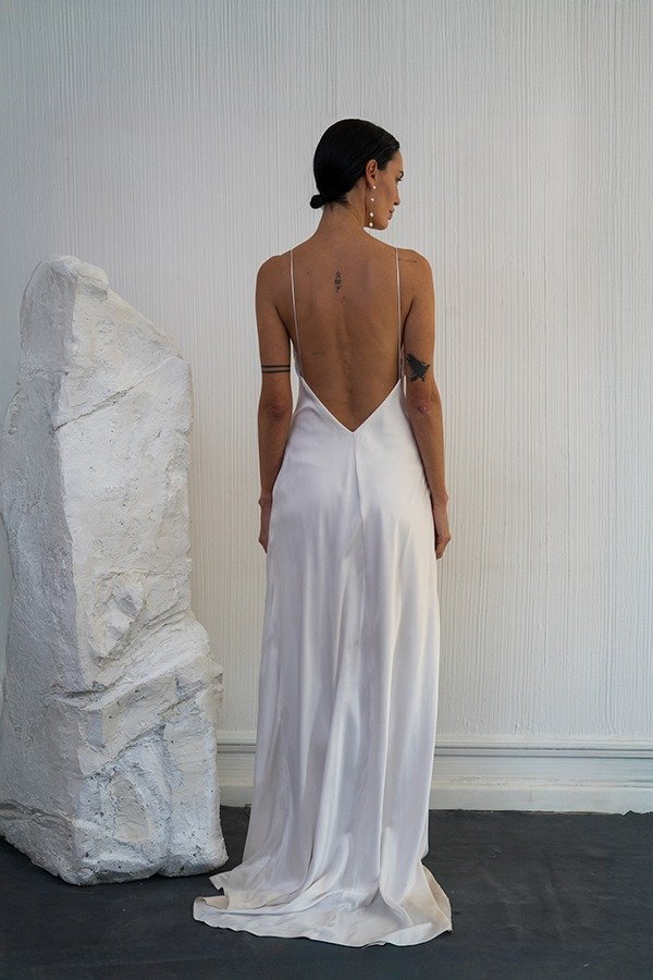 El Vestido Huella se realiza especialmente a medida y por encargo. La entrega es a 60 días.